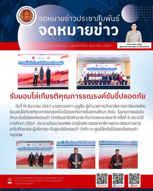 รับมอบโล่เกียรติคุณการรณรงค์ขับขี่ปลอดภัย วิทยาลัยการอาชีพนครไทย 19/12/2024 Last updated : 18/06/2025 aaaa bbbb